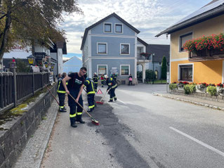 Ölbindemittel gebunden. Anschließend wurde die Straße durch das Aufstellen von Ölspur-Warntafeln abgesichert.